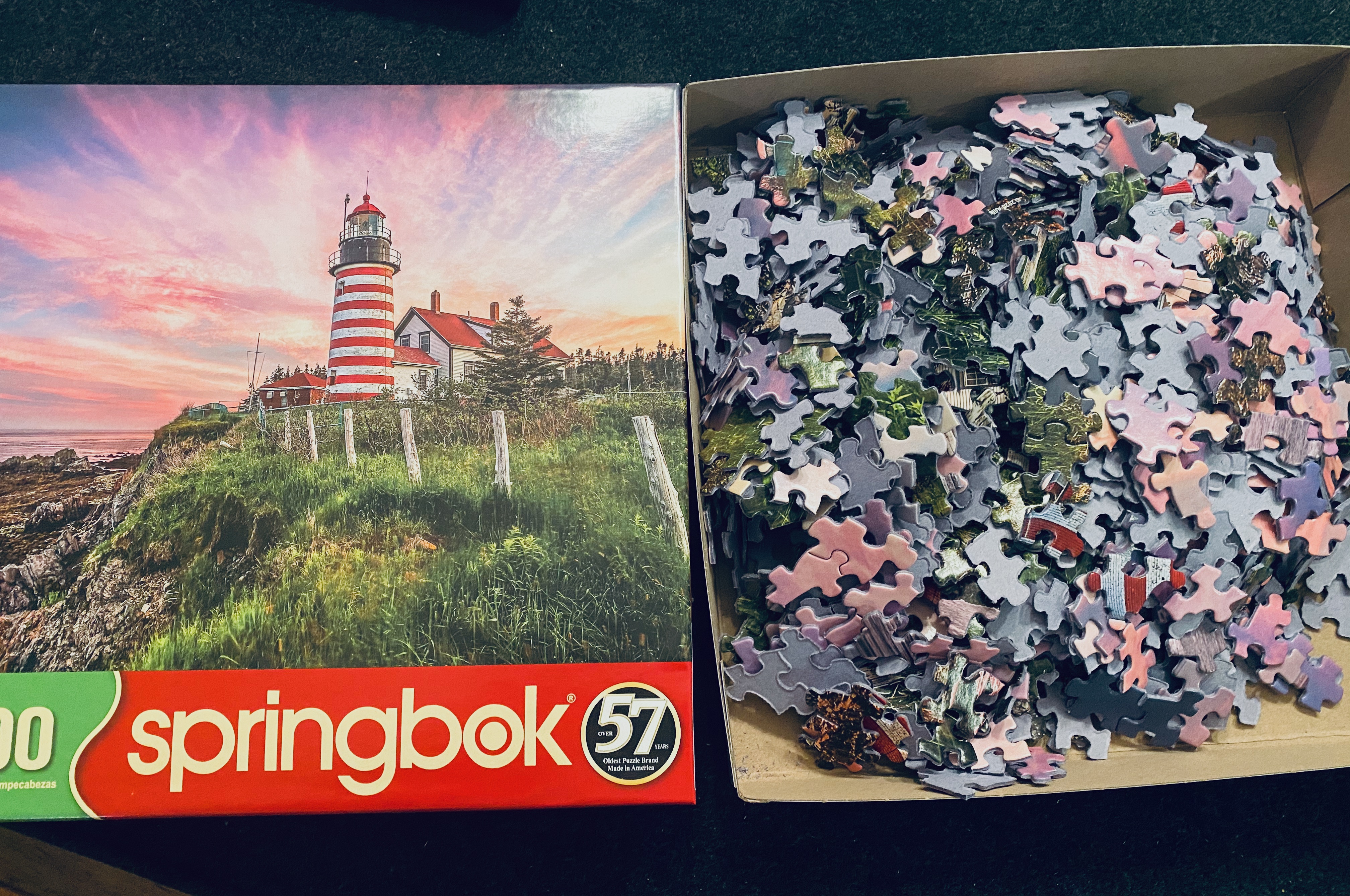 With the weekend down-time, I’m probably gonna start my next puzzle tomorrow. It was a Christmas gift from my niece, and it ended up having a bit of a joke attached to it. You see, she’d also brought a puzzle to her parent’s house as a traditional Christmas project—yet another one of those shared traditions I’m looking forward to ALL of us enjoying together for Christmas 2021!*