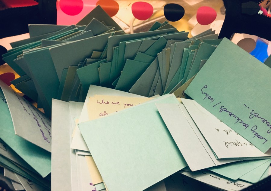 And I’ve drawn about a dozen topics out of the box o’ prompts, but they’ve all been completely uninspiring. (Not sure whether to blame that on the prompts themselves or my current frame of mind.) It’s a touch embarrassing to admit that, however unimpressed I was by this bunch of prompts, I still put them right back into the “hatbox” to haunt me another day.***